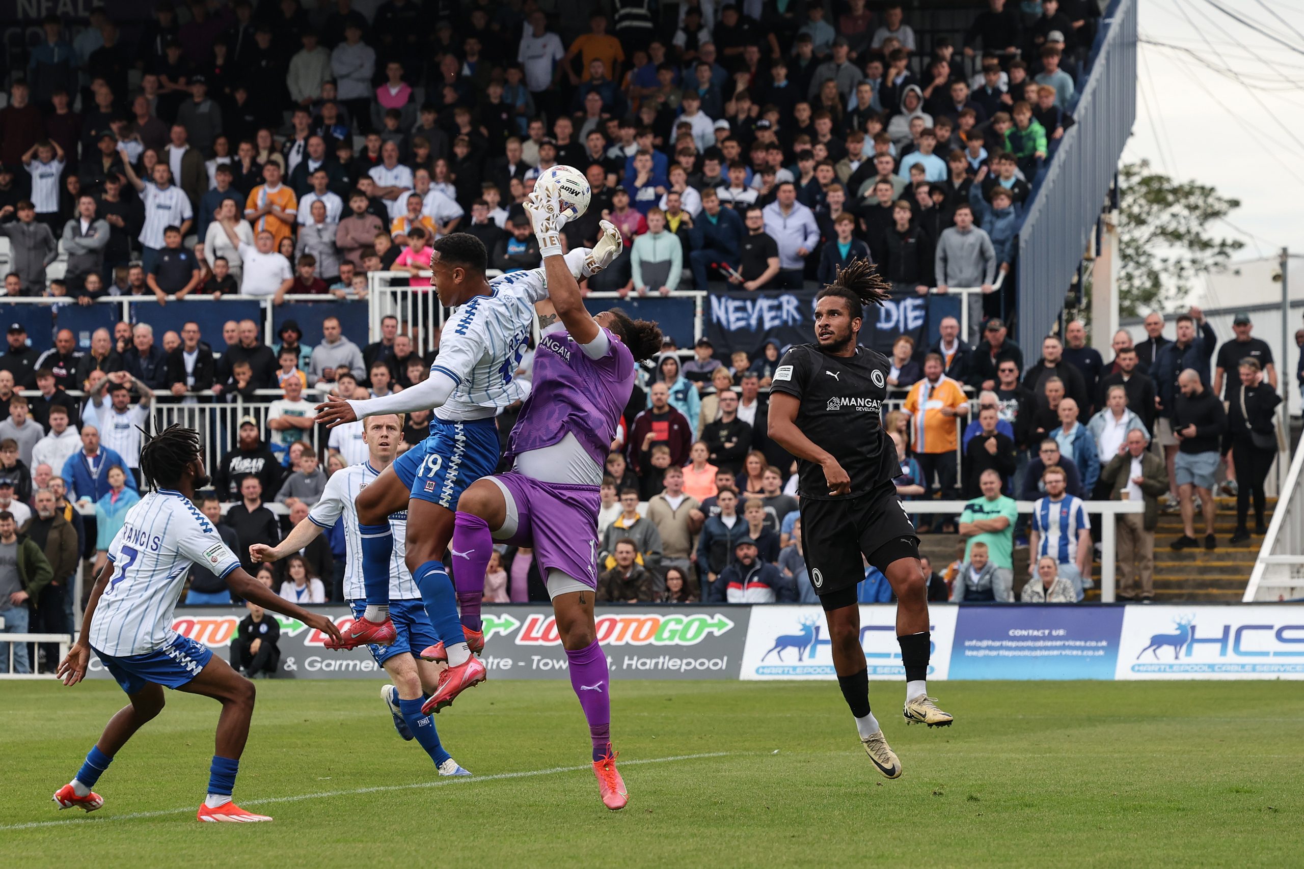 Ten-man Hartlepool United produce a determined performance as both sides draw 0-0 at the Prestige Group Stadium to keep up their unbeaten Enterprise National League campaign.